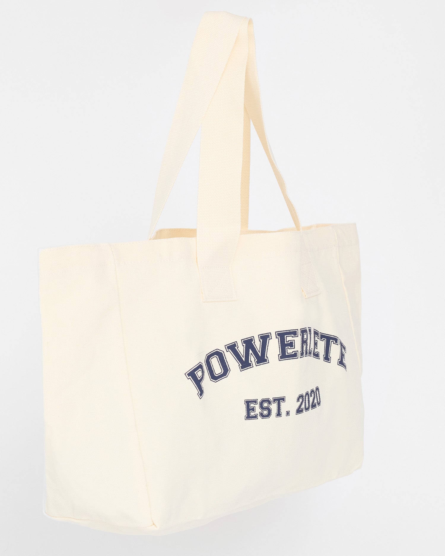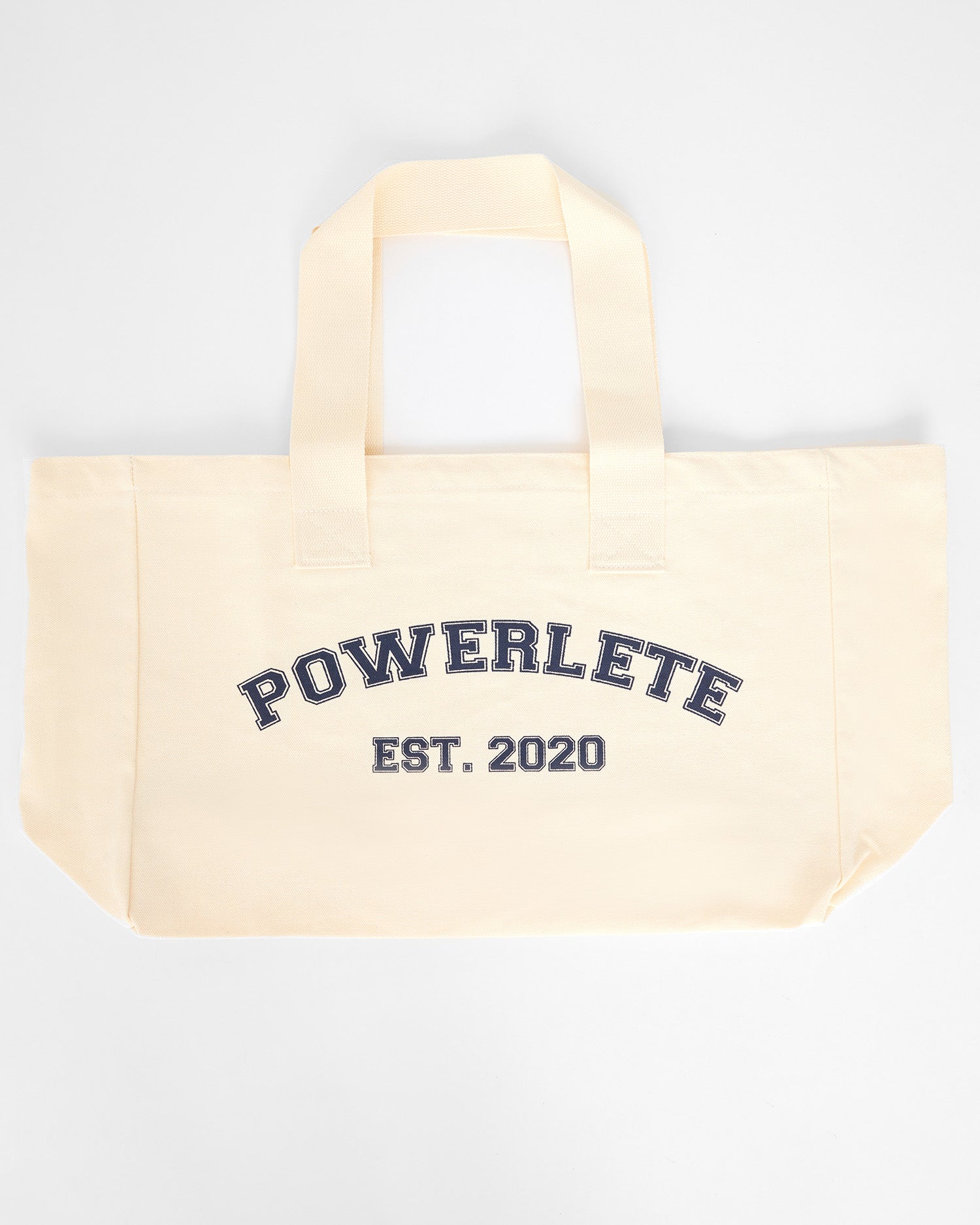 Mød Powerlete Varsity Tote - din nye hverdagstaske. I en neutral beige med et fedt navy varsity-logo er denne taske den perfekte blanding af stil og funktion. Uanset om du træner, løber ærinder eller går i byen, er den bygget til at følge med din travle livsstil. Den er praktisk, holdbar og ubesværet cool, så du kan bruge den til alt, hvad dagen byder på.