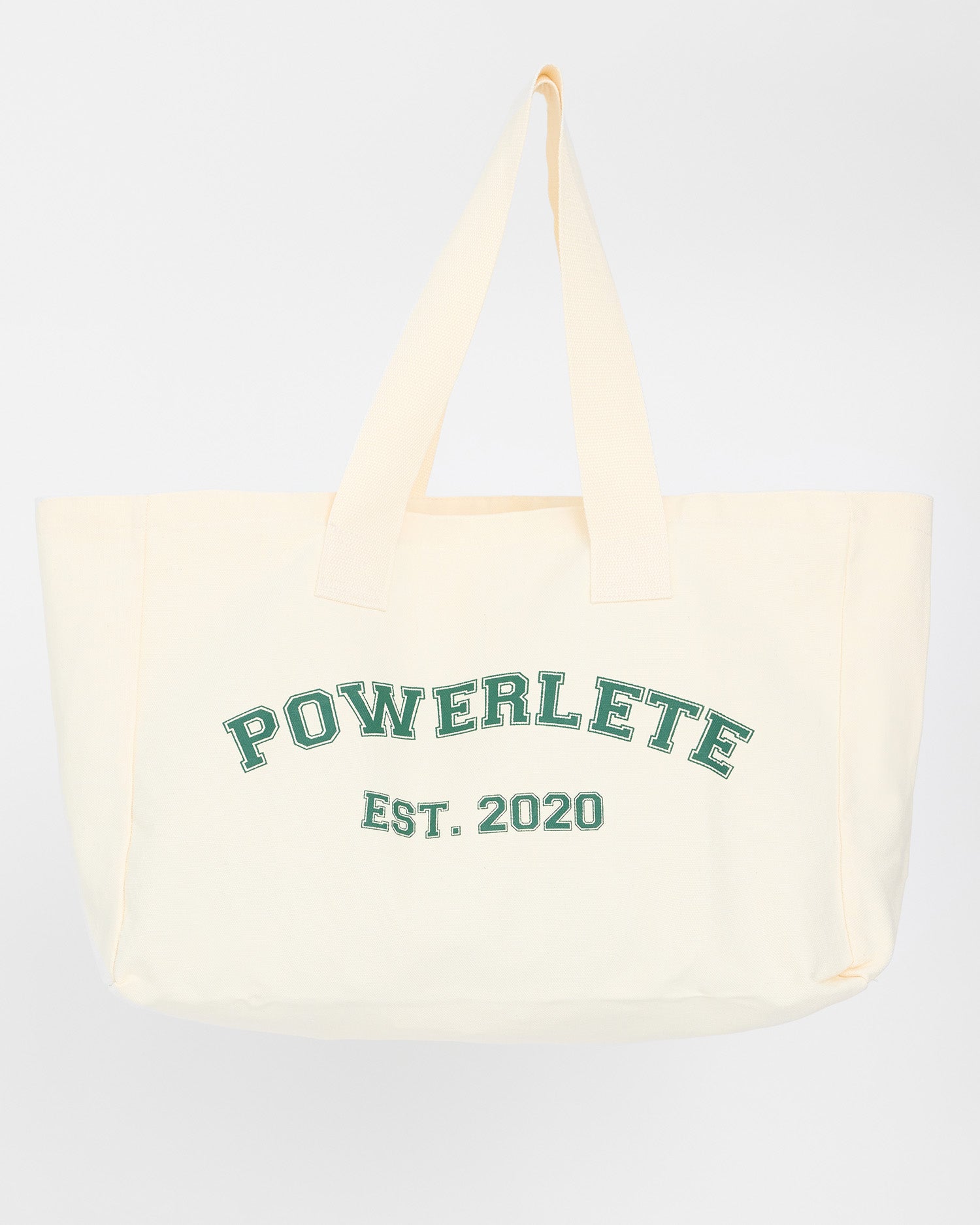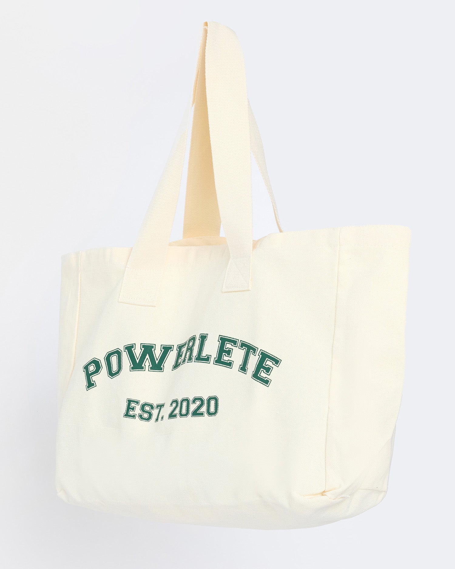 Te presentamos la Powerlete Varsity Tote, tu nueva prenda esencial para el día a día. En un beige neutro con un llamativo logotipo del equipo universitario en verde bosque, esta bolsa es la combinación perfecta de estilo y funcionalidad. Tanto si vas al gimnasio como si haces recados o sales, está hecha para seguir el ritmo de tu ajetreado estilo de vida. Práctica, duradera y fresca sin esfuerzo, es tu bolsa ideal para lo que te depare el día.